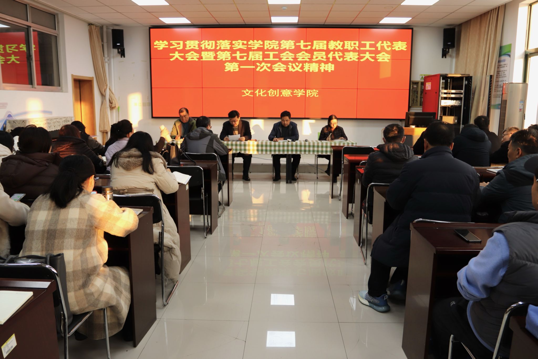 12月15日下午,文化创意学院组织召开全体教师会议,认真学习贯彻落实学院第七届教职工代表大会、第七届工会会员代表大会第一次会议精神。