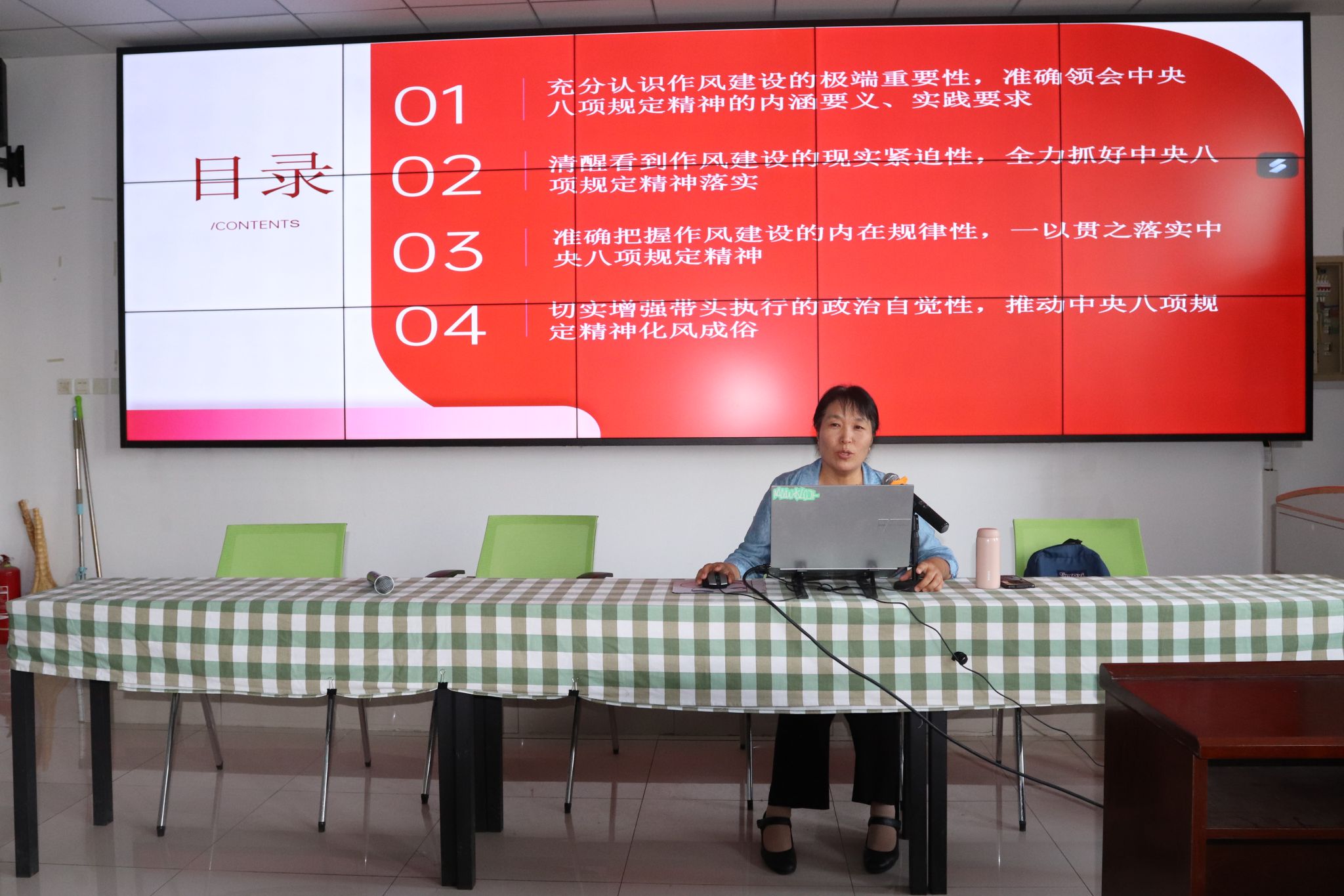 鞠桂芹结合学院实际,从充分认识作风建设的极端重要性,准确领会中央八项规定精神的内涵要义、实践要求;清醒看到作风建设的现实紧迫性,全力抓好中央八项规定精神落实;准确把握作风建设的内在规律性,一以贯之落实中央八项规定精神;切实增强带头执行的政治自觉性,推动中央八项规定精神化风成俗四个方面系统讲解了落实中央八项规定精神的内涵、意义及做法要求。