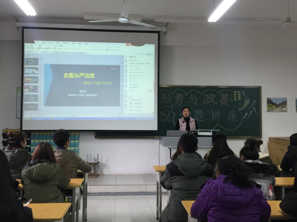 这次“形势与政策”的专题讲座,分析解读了当代大学生关注的时政热点和焦点问题,激发了同学们的爱国主义情怀,号召当代大学生要以学习十八届六中全会精神为动力,将六中全会精神深植于内心、落实于行动。