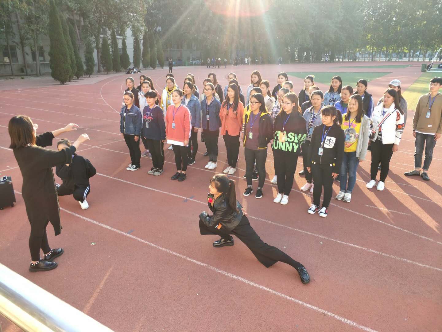 为喜迎十九大的胜利召开,激发同学们的爱国热情,不忘初心永远跟党走。10月24日,文化创意学院17级学前专业学生在体育场进行合唱比赛彩排。