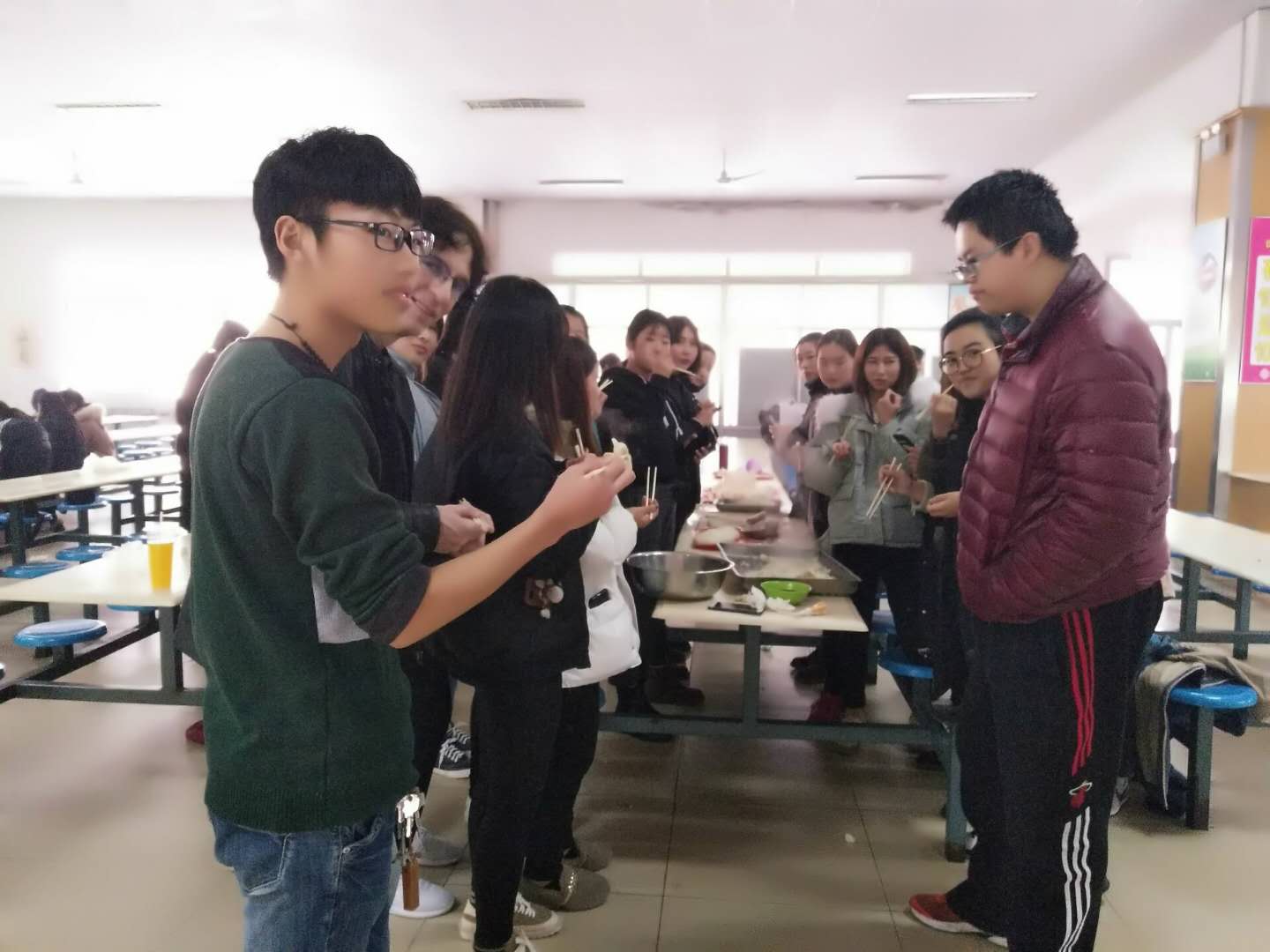 情暖元旦,爱在校园。为弘扬中华传统节日文化,培养学生的动手能力,增强班级凝聚力,12月28日下午,文化创意学院各班级在学生餐厅举行了包水饺活动。