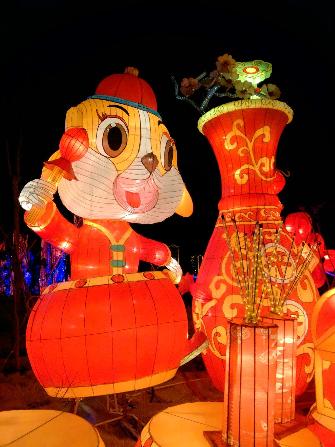 进入展区正门,迎面是“正月闹花灯,狗啸景秀春”主题灯组,树上霓虹灯闪烁、彩灯绚丽夺目,仿佛闯入了“天上的街市”。随着人流前行,“建区十周年,淳淳峡山情”灯组展现了峡山的发展变化和风土人情。“穿越时光机,梦幻游乐场”灯组最受老人和孩子们的喜爱,惟妙惟肖的海洋生物随音乐游动,绚丽的灯光让人恍如置身灯的海洋。“华灯耀世界,璀璨梦光影”,红火的中国红和大红灯笼绽放在人群的四周,把人群包围在浓浓的春节氛围里。除了四大灯组板块,还有特色灯展。其中总长128米、高18米的鲤鱼跃龙门灯组已申请了上海大世界吉尼斯记录。百米紫藤花和奇珍异草组成了美轮美奂的“梦幻森林”景象。非遗传承瓷器技术——盛世宫灯,由17位非遗传承人,用5万余件瓷器,耗时3个月制作完成。