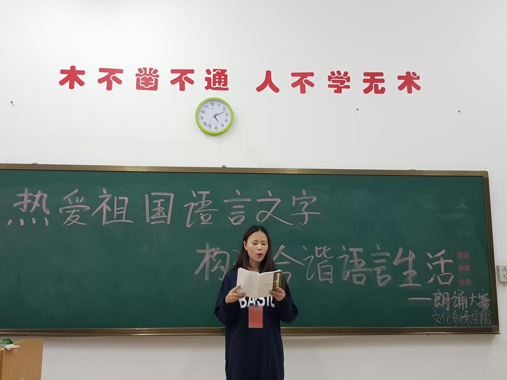 为了积极响应第21届全国推广普通话宣传周精神要求,进一步增强全体师生的语言规范意识和推广普通话参与意识,通过校园文化活动传承中华优秀文化,文化创意学院近期举行了以“热爱祖国语言文字,构建和谐语言生活”为主题的朗诵比赛活动。