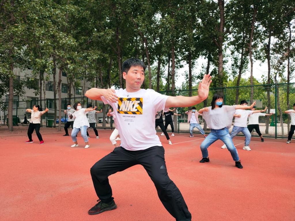 活动伊始,指导老师向同学们讲解了八段锦的相关知识,八段锦健身功法是国家体育总局推广的全民健身功法之一,是中华民族传统体育项目。此套健身操动作舒展,简单易学,由八种如“锦”缎般优美、柔顺的动作组成,在现代养生保健生活中具有独特的作用。接下来,指导老师带领学生进行现场教学,整套健身动作柔和连绵,滑利流畅,同学们认真学习并进行初步练习。随后,在学生的自我练习环节,指导老师认真观察并及时示范指导了学生的动作。