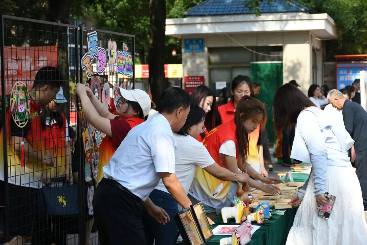 活动现场,志愿者们秉持助人为乐、以身作则的奉献精神,积极投入到工作当中,协助社区布置展台,摆放展品,确保每一个细节都完美呈现。他们穿梭在各个摊位上,利用专业优势,耐心地向市民介绍非遗文化的历史渊源、技艺特点和价值意义,提升了市民群众的艺术素养,展现了青年大学生的朝气与活力。此外,文化创意学院的志愿者还为社区群众带来了舞蹈和歌曲,精彩的表演得到了社区群众的一致赞赏。在与邻里守望相助的过程中,志愿者们得到了锻炼和成长。