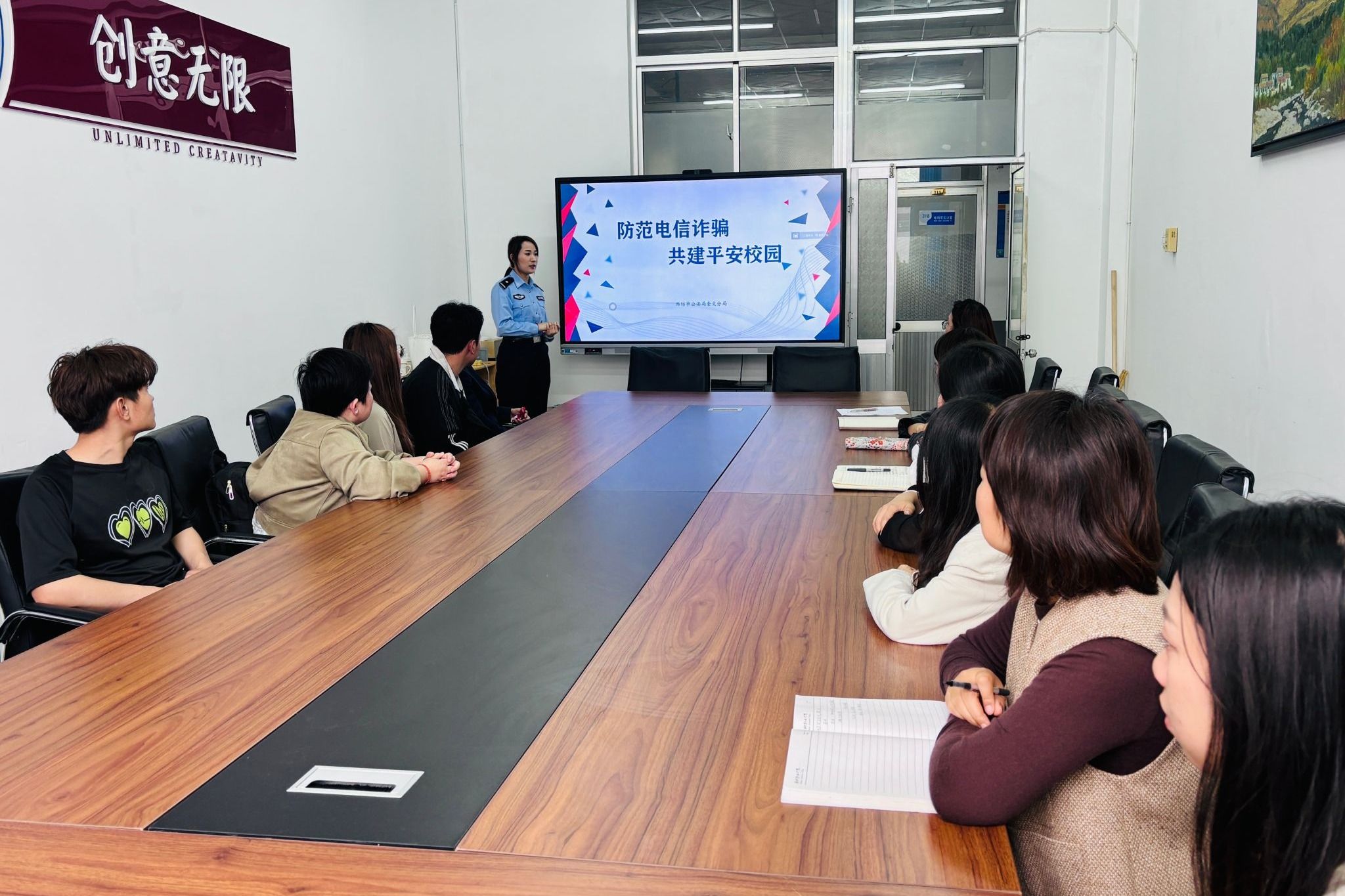 为切实提升师生防范电信网络诈骗能力,构建平安和谐校园,5月7日下午,潍坊职业学院联合潍坊市公安局奎文分局、中国电信潍坊分公司及中国建设银行潍坊分行,在奎文校区16号楼319会议室举办辅导员反诈专题培训会,文化创意学院和国际交流与合作处全体辅导员参与培训,共同学习反诈知识与应急处置技能。