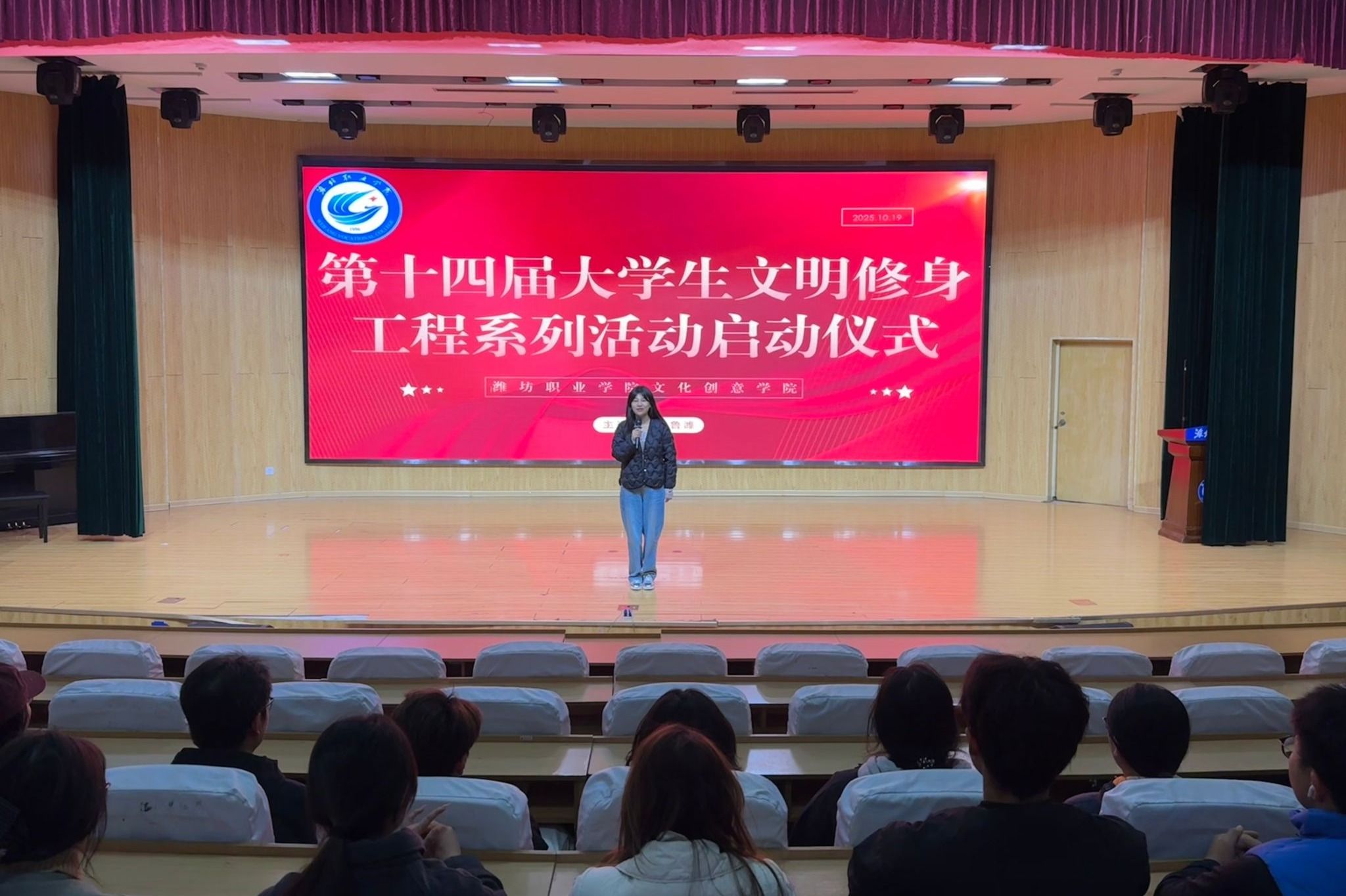 为进一步提升学生思想道德素质和文明素养,促进学生德智体美劳全面发展,10月20日,文化创意学院在奎文校区16号楼报告厅举办第十四届大学生文明修身工程系列活动启动仪式。