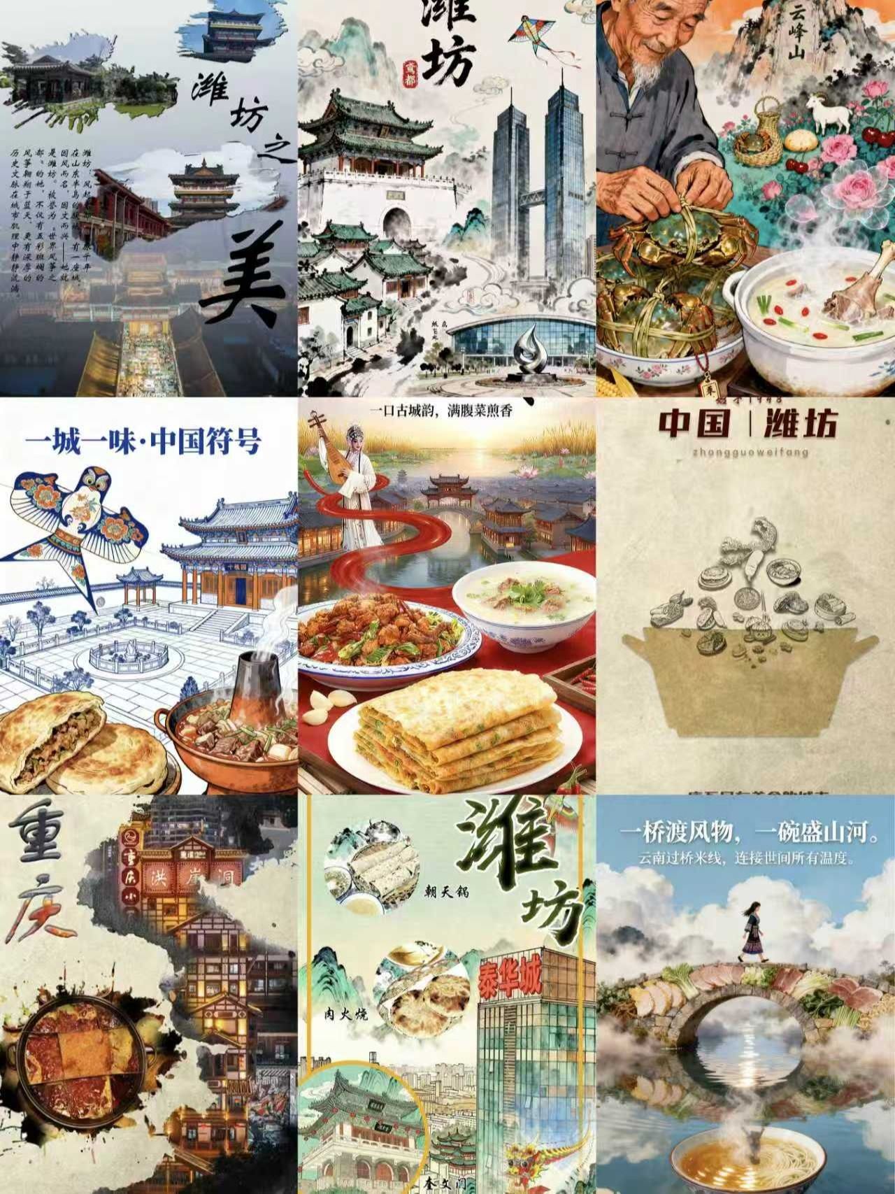 本次大赛以“一城一味”为切入点,鼓励同学们穿越表层符号,探寻城市独特的文化内核,共收集40余组作品。同学们的作品视角独特,创意纷呈:有的同学聚焦莱州,其作品并未直接描绘海产,而是别出心裁地将莱州黄金石的天然纹理与月光下波涛的粼粼波光进行数字叠印;而诠释潍坊的作品则充满了动感与活力,一双正在绘制“沙燕”的手,让风筝上的青云白鹤纹样跃然纸上,最终化为实体飞鸟冲破天际。评委们从文化深度、创意构思、视觉表现等维度进行综合评审,最终评选出一等奖3名、二等奖5名、三等奖8名、优秀奖10名。