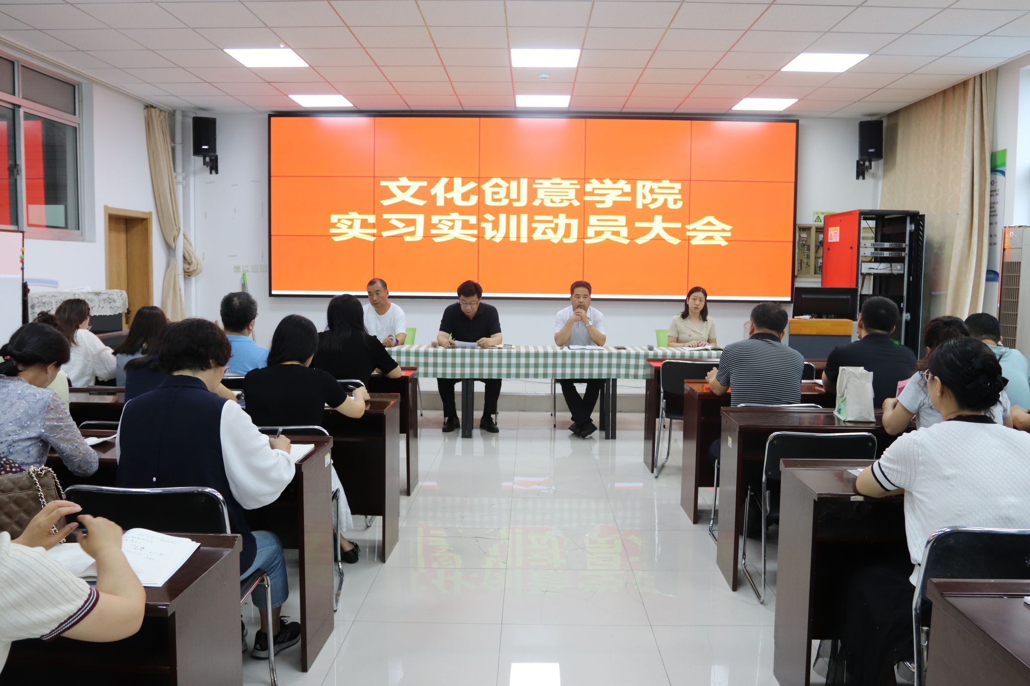 为进一步提升实习指导质量,强化实习管理效能,加强学生岗位实习管理工作,文化创意学院于6月19日在16号楼会议室召开了2026届综合实训与岗位实习工作会议。文化创意学院领导班子成员和全体实习指导老师参加会议。